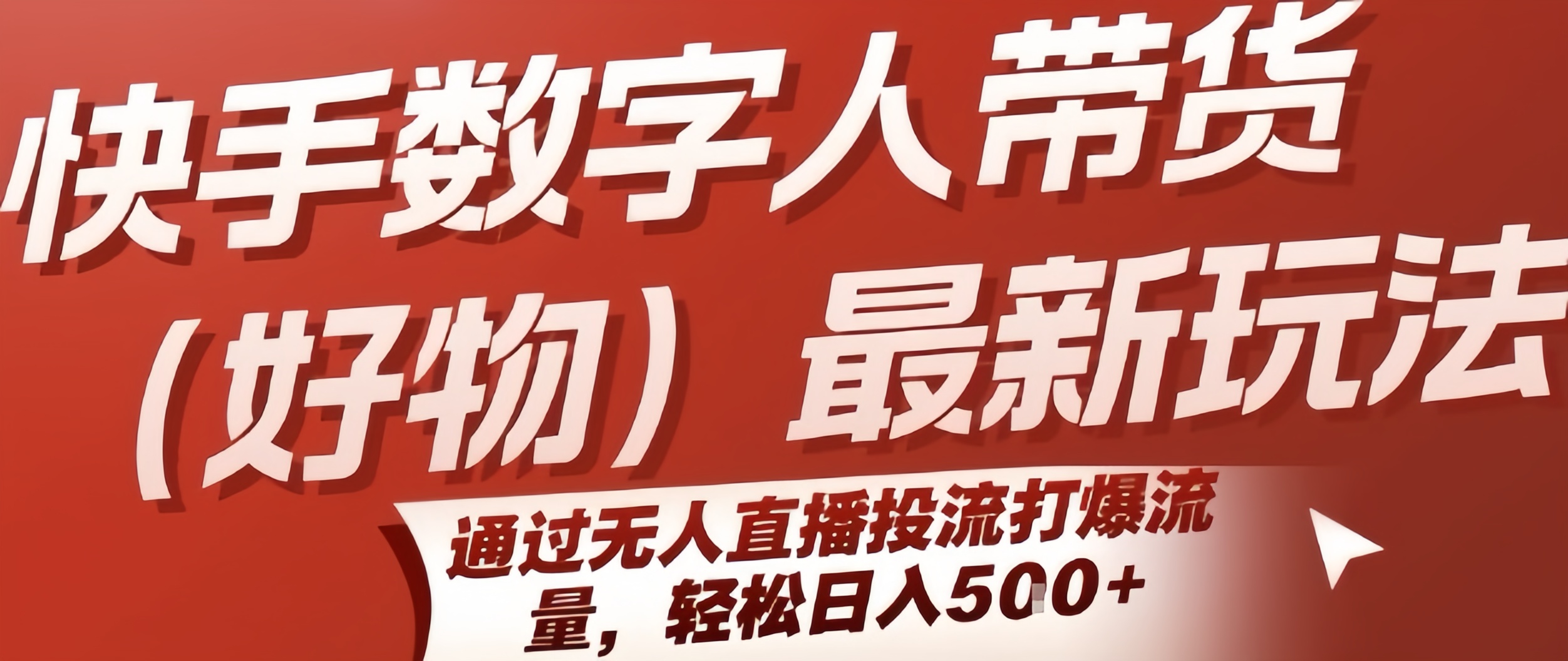 快手数字人带货(好物)最新玩法,通过无人直播投流打爆流量,轻松日入500+