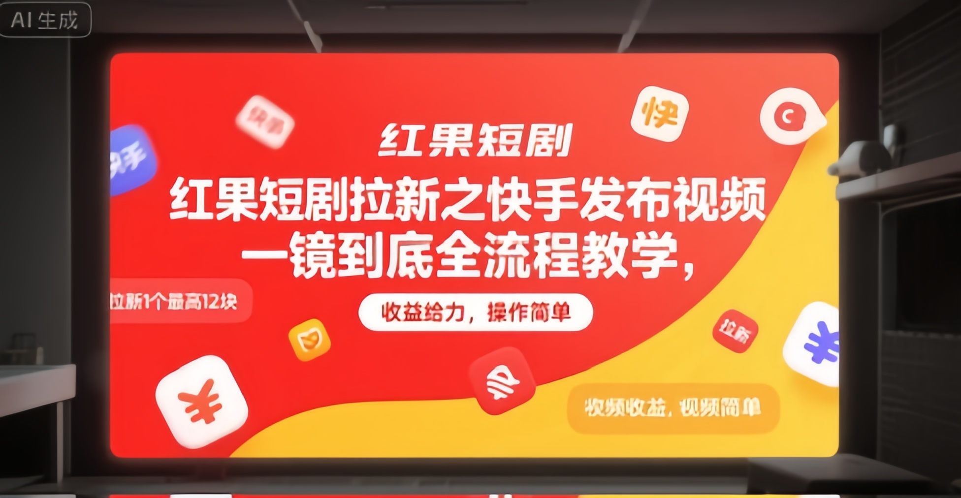 红果短剧拉新之快手发布视频一镜到底全流程教学,拉新1个最高12块,收益给力,操作简单